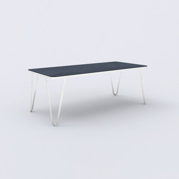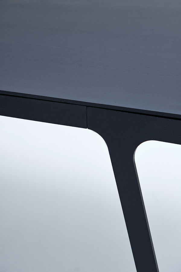 The Loop series is characterized by its elegant and futuristic design language. The soft, yet geometric lines have a Scandinavian design reference, but also reminiscent of metal furniture of the Bauhaus era. All furniture in the series follow the same design principle. The only 6 mm thin aluminum frame is cut from a metal sheet and then bent. This gives it its stability and forms its characteristic, loop-like silhouette. This consistent design principle and craftsmanship make the Loop series so unique. Small embedded plastic gliders are discreetly integrated in the frame without disturbing the overall impression.