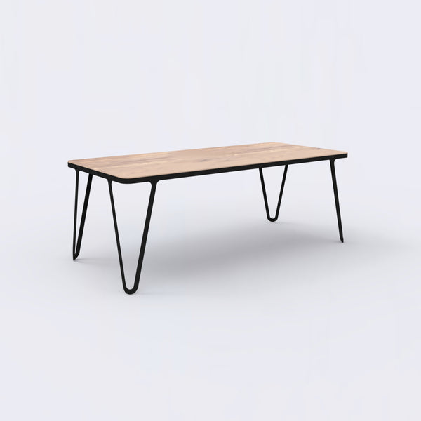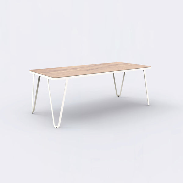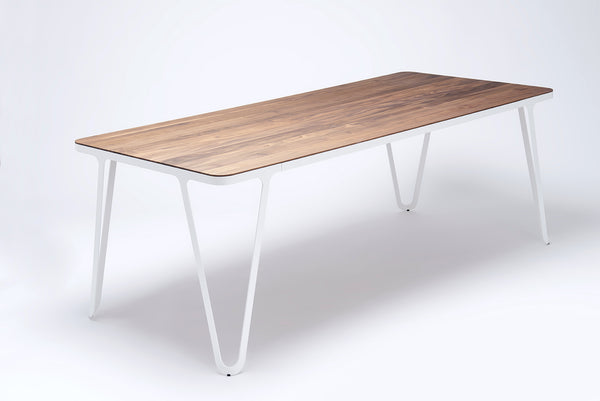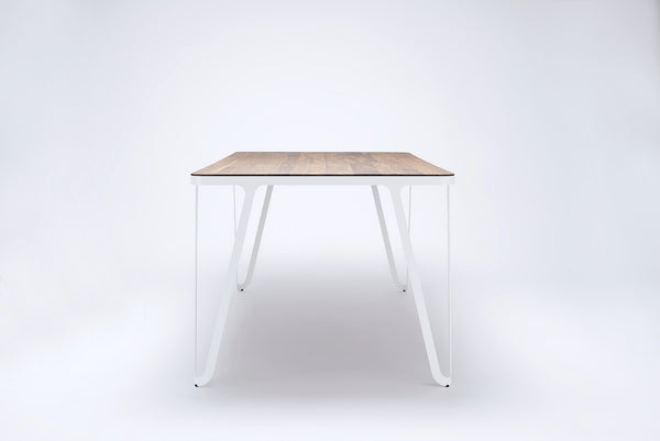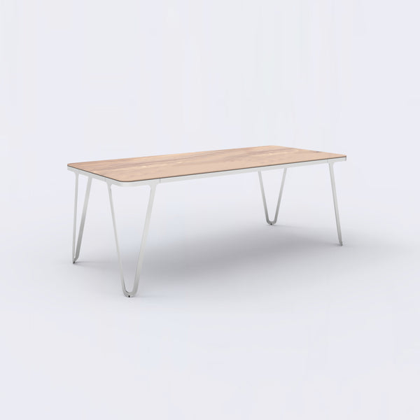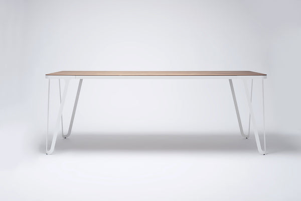 The elegant Loop Table, which is very light for a masiv wood table, offers many possible combinations with its three wood variants and four frame colors. The extra matt natural effect coating preserves the natural look and feel of the solid wood panel and is characterized by its special easy care. A post-treatment as with oiled plates is not required. Design: Sebastian Scherer