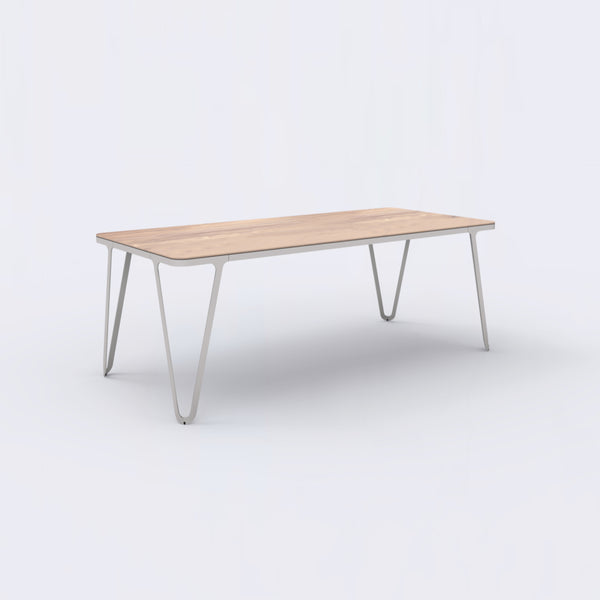 The Loop series is characterized by its elegant and futuristic design language. The soft, yet geometric lines have a Scandinavian design reference, but also reminiscent of metal furniture of the Bauhaus era. All furniture in the series follow the same design principle. The only 6 mm thin aluminum frame is cut from a metal sheet and then bent. This gives it its stability and forms its characteristic, loop-like silhouette. This consistent design principle and craftsmanship make the Loop series so unique. Small embedded plastic gliders are discreetly integrated in the frame without disturbing the overall impression.