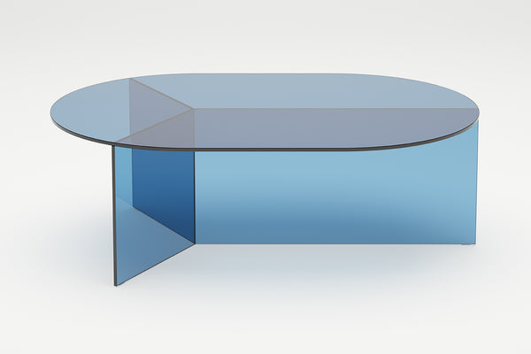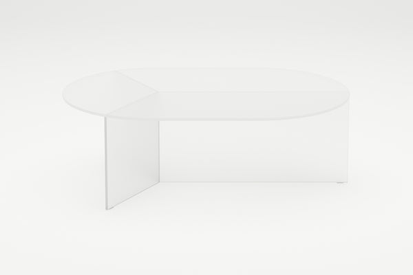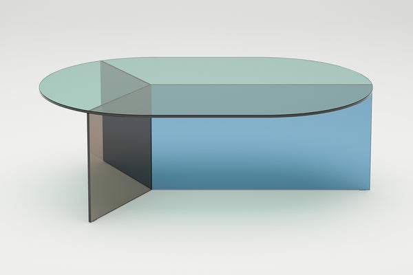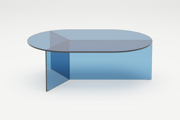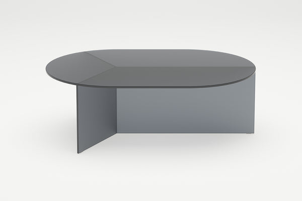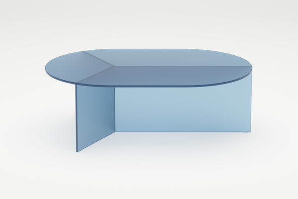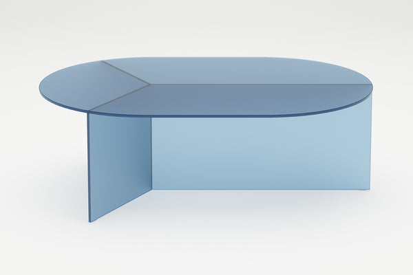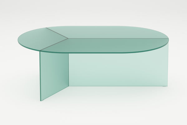 The Osom tables are the round version of the Isom tables and can be ideally combined with each other. As with the hexagonal Isom tables, the base consists of three foot elements arranged at equal angles, which give the table its sculptural appearance. This design idea from 2012 formed the beginning of the glass table series by Sebastian Scherer. A special detail are the CNC-ground double mitres in the middle and the jointless bonding of the foot elements. The glass tables are available in five colours, each in clear glass and satin glass. Design: Sebastian Scherer